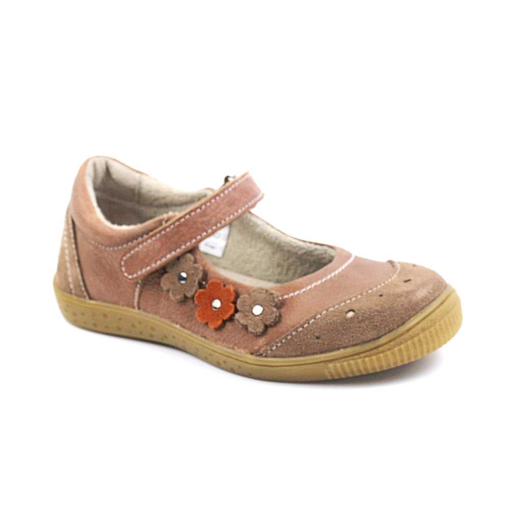 Pantofi usori , de copii , din piele naturala, cu flori 1793-BEJ