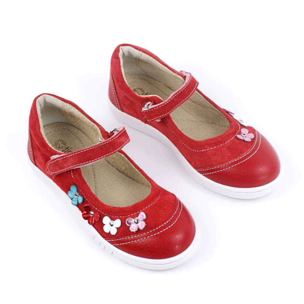 Pantofi usori , de copii , din piele naturala, cu flori 1793-ROSU/4