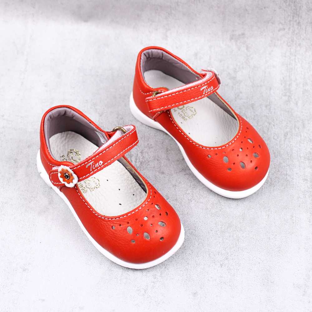 Pantofi lejeri pentru copii din piele naturală, cu perforații - PRIMII PAȘI 7186-ROSU/CORAI/11