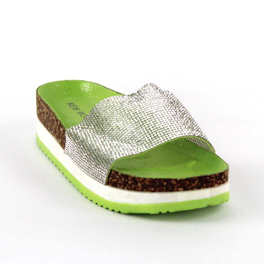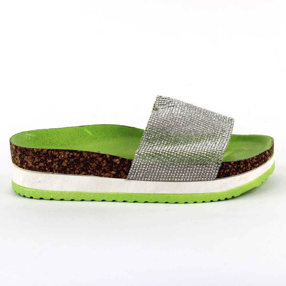 Papuci casual de dama cu aplicatii de pietre 00116-GREEN