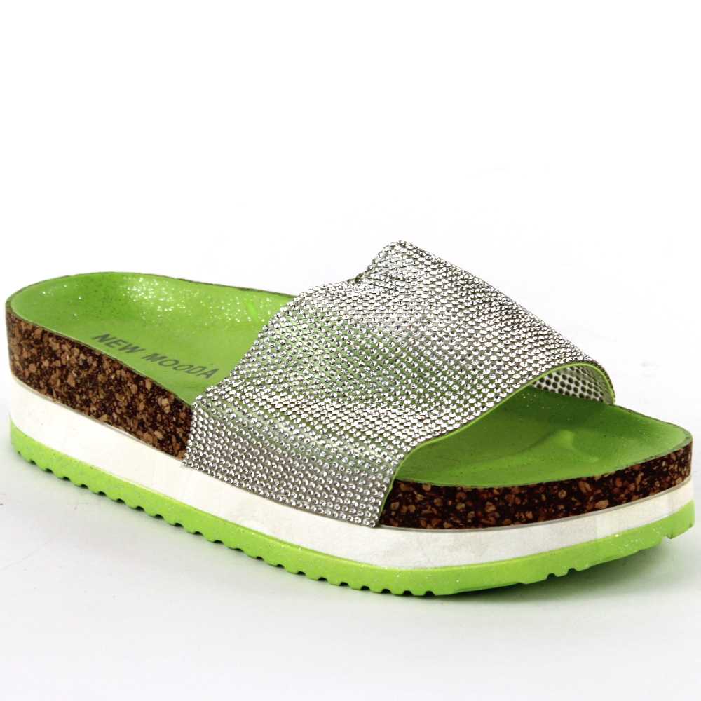 Descoperiți Papucii Casual de Damă cu Aplicații de Pietre 00116-GREEN