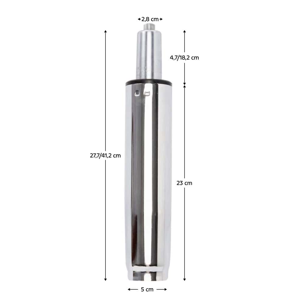 Material: metal Culoare: crom Diametrul pistonului: 5 cm Diametrul tijei pistonului: 2,8 cm Lungime totală a pistonului: 41,2 cm Lungimea corpului pistonului: 23 cm Extensie: 13,5 cm Forţă piston: 350 N Portanţă: max. 150 kg Greutate: 0,8 kg Piston cu gaz de schimb Pentru fotolii de birou Pentru scaune de birou Pentru scaune pivotante