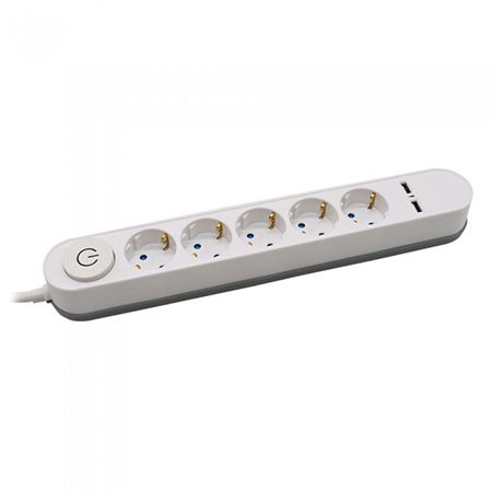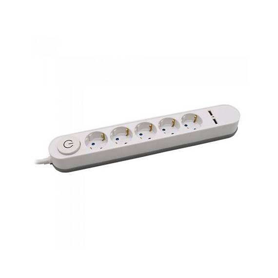 Prelungitor 5 Intrari Intrerupator iluminat & 2 Port-uri USB 3G 1.5mm x 3m Alb