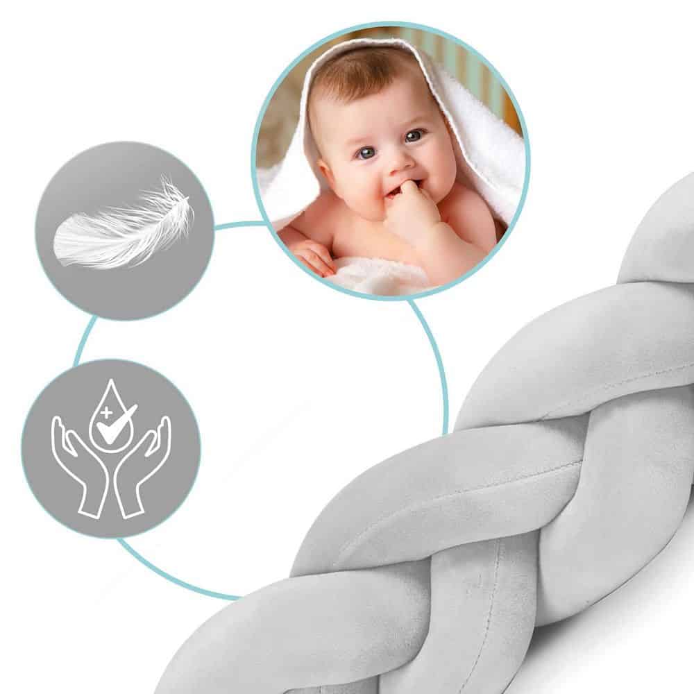 Protectie laterala patut bebe, Bumper impletit, 100 % antialergic, lavabil, 3m, gri