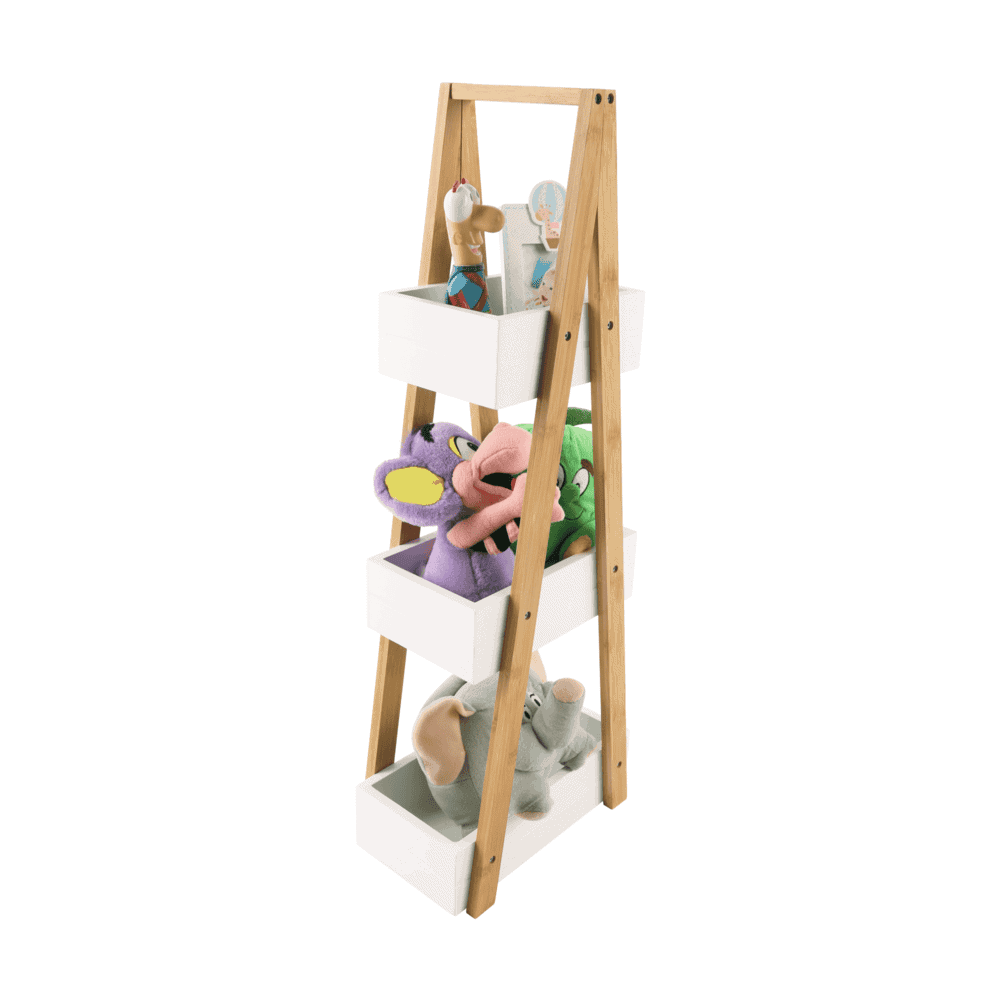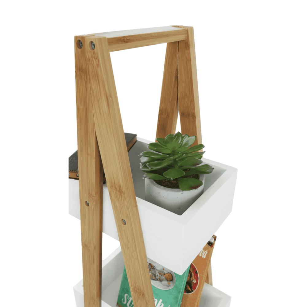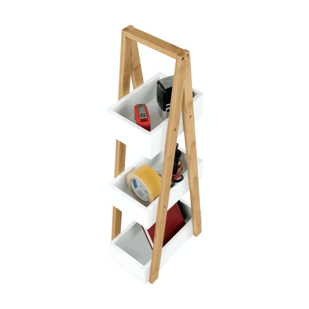 Raft VEGO Material: MDF alb/bambus lăcuit Dimensiuni (LxGxÎ): 30x18,5x81 cm Grosimea materialului: 12 mm Furnizat nemontat