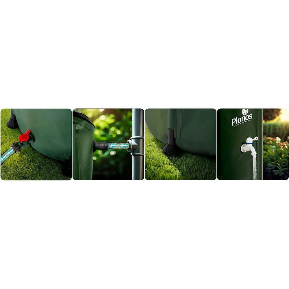 Un furtun de gradina poate fi conectat cu usurinta la rezervor, permitand udarea convenabila a paturilor de flori, gazonului sau plantelor din sera. Acest lucru face ca apa de ploaie sa fie disponibila in intreaga gradina, economisind timp si efort.