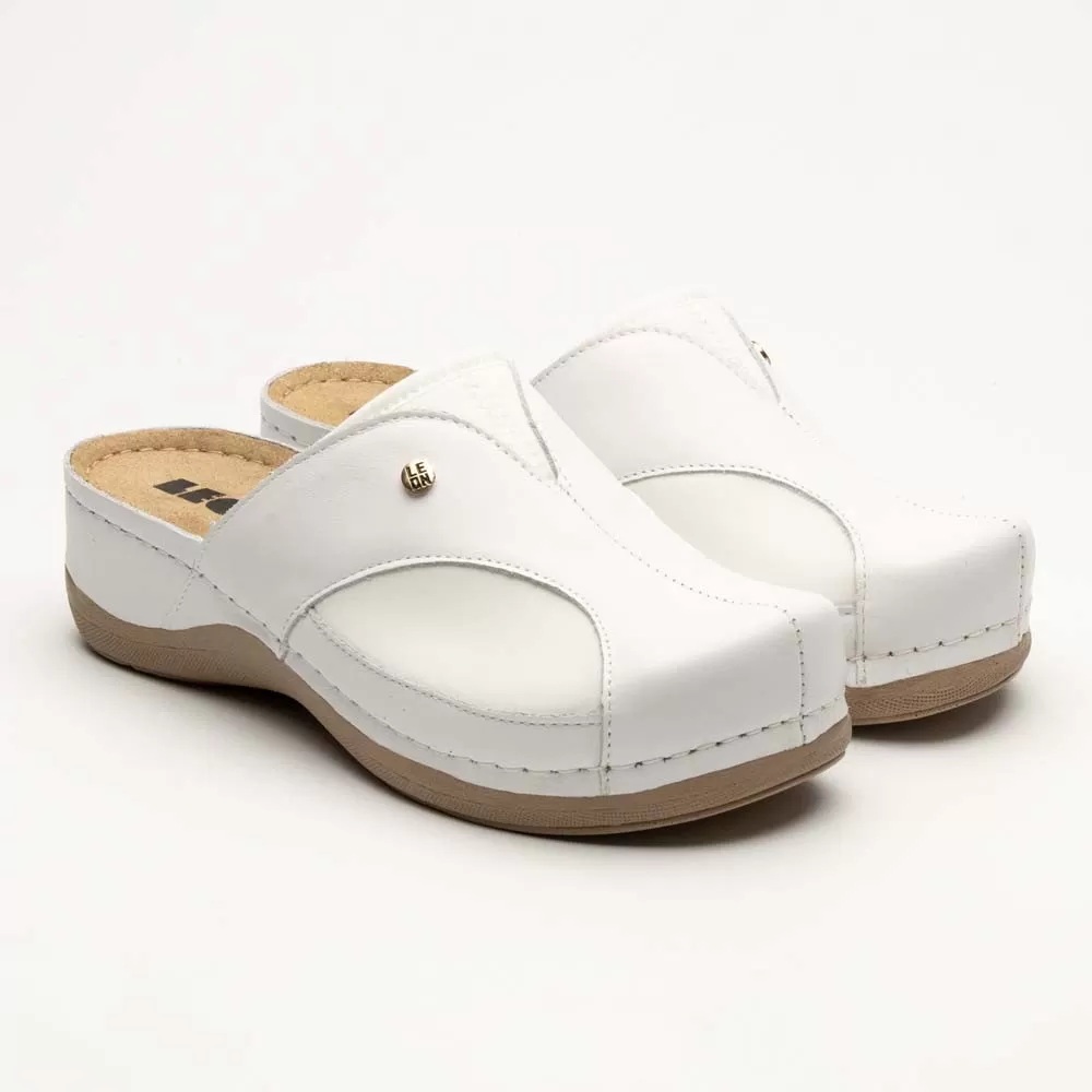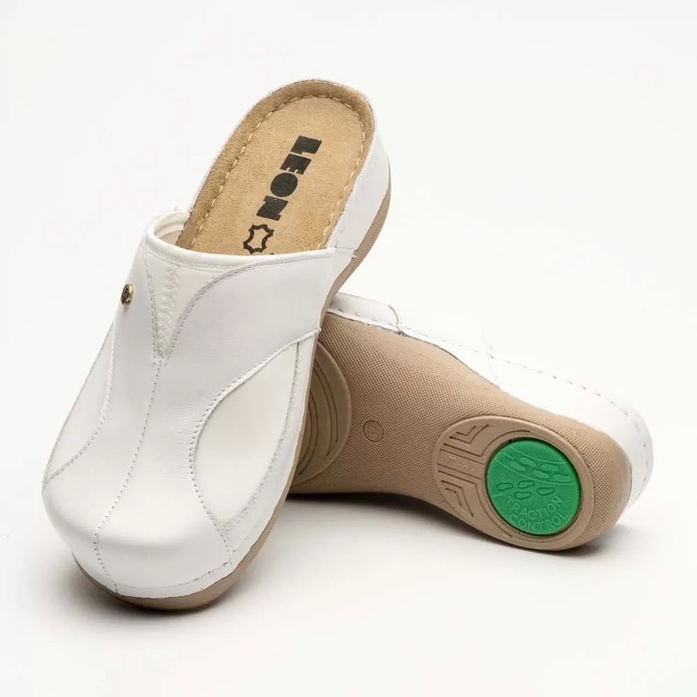 Saboti medicali, de dama, din piele, alb, Leon 912