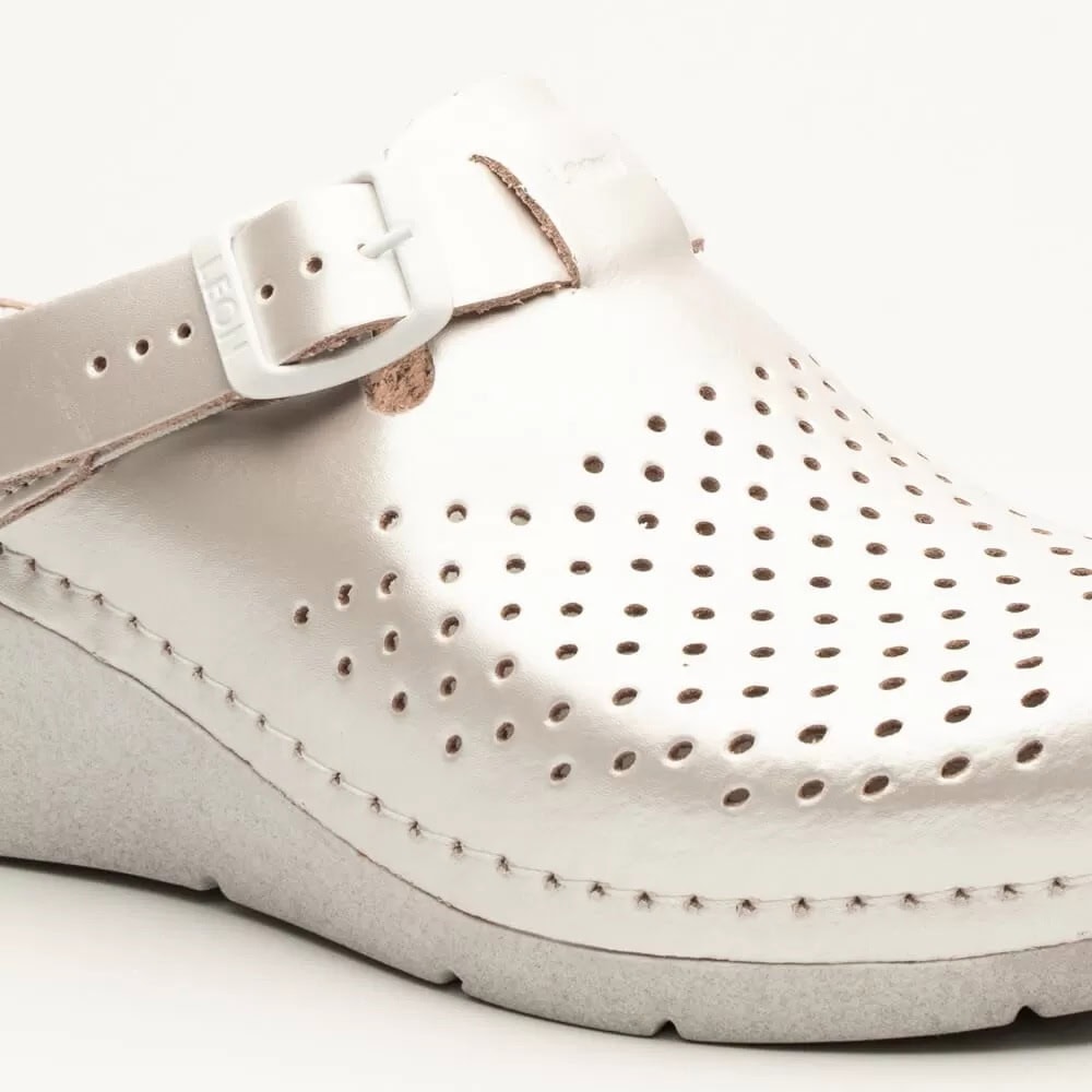 Saboti medicali, de dama, din piele, alb perlat, Leon 1000