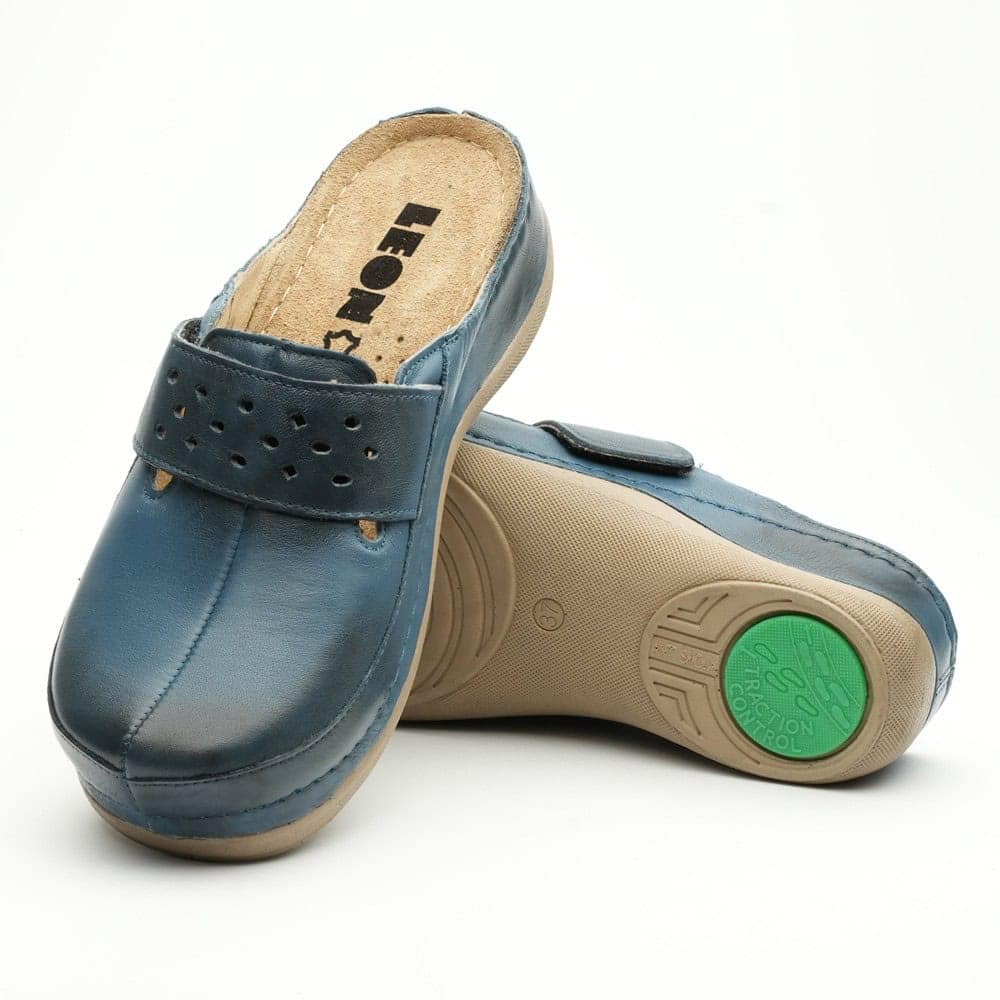 Saboti medicali, de dama, din piele, bleumarin, Leon 902 Modelul Leon 902 are un design ergonomic, este dedicat femeilor care petrec mult timp în picioare și care caută o combinație între estetică și eficiență. Creat special pentru mediile medicale și profesionale, oferă un echilibru ideal între confort și stil. Pielea naturală, utilizată atât în exterior, cât și în interior, oferă durabilitate și respirabilitate excepțională. Branțul cu gel memorie adaptează forma piciorului și atenuează punctele de presiune, prelungind nivelul de confort. Talpa anatomică din poliuretan flexibil, antiderapantă și antistatică, asigură stabilitate și siguranță. Disponibili în mărimi de la 36 la 41, acești saboți sunt alegerea perfectă pentru un confort ergonomic și un look profesional atrăgător. Caracteristici: Culoare: bleumarin – un ton elegant și energic, ușor de asortat cu echipamente profesionale sau uniforme. Design modern și curat, fără elemente inutile, care transmite profesionalism și claritate vizuală.Baretă reglabilă cu ajutorul unei benzi Velcro Exterior/interior: piele naturală premium 100%, respirabilă și rezistentă pentru utilizare zilnică. Branț: prevăzut cu strat de gel cu memorie și efect de masaj, pentru distribuirea uniformă a presiunii și reducerea oboselii. Talpă din poliuretan flexibil și ușor, cu contur anatomic, pentru susținere în timpul mersului. Talpa antialunecare oferă siguranță și stabilitate în medii profesionale variate. Disponibilitate mărimi: mărimi de la 36 până la 41 Recomandați pentru: personal medical, asistente, infirmiere, terapeuți angajați din HoReCa centre de estetică, saloane grădinițe, școli sau centre de îngrijire laboratoare sau echipe de curățenie.