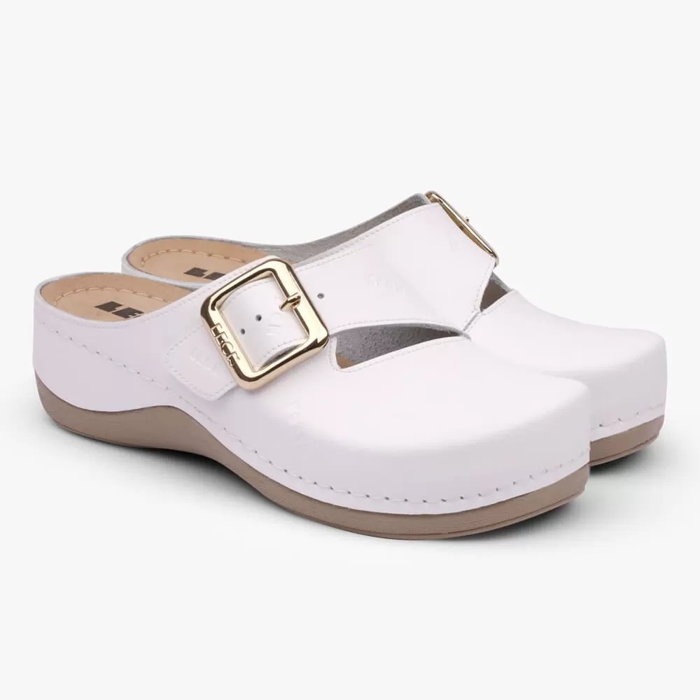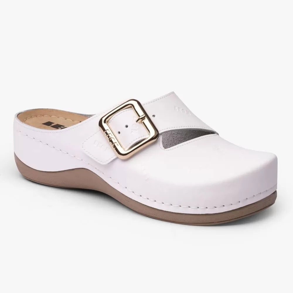 Saboti medicali Leon 933 Bakkar, de dama, din piele, alb mat