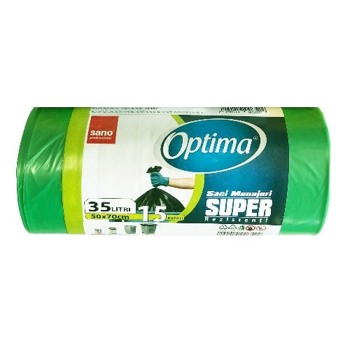 Cu sacii menaj Sano Optima Super - VERZI, vei avea parte de o soluție eficientă pentru gestionarea deșeurilor din gospodărie. Fabricați din material durabil LDPE, acești saci sunt rezistenți și fiabili. Cu o capacitate de 35L, acești saci sunt ideal pentru colectarea deșeurilor menajere.