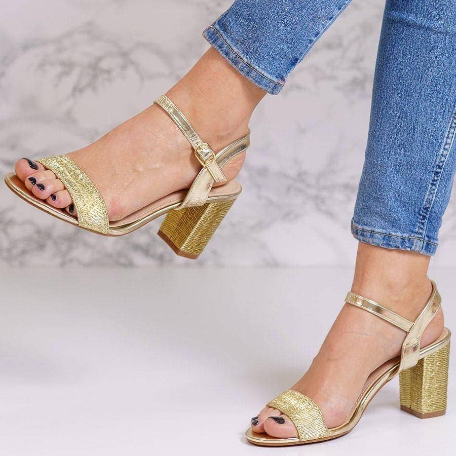 Sandale elegante cu toc din piele ecologică aurie Elara