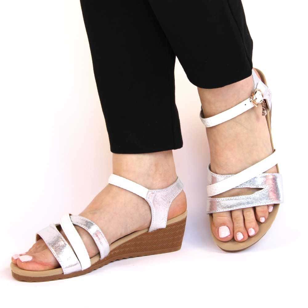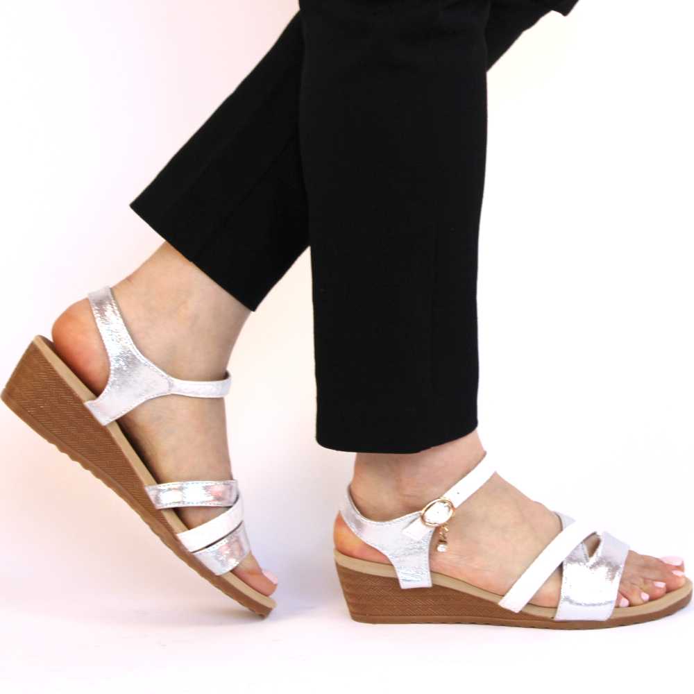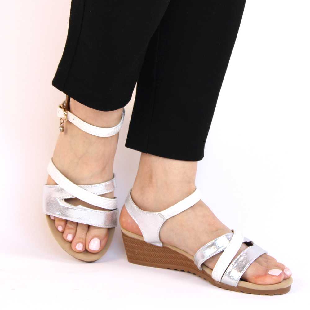 Sandale de dama comode cu platforma AD-63-SILVER-WHITE