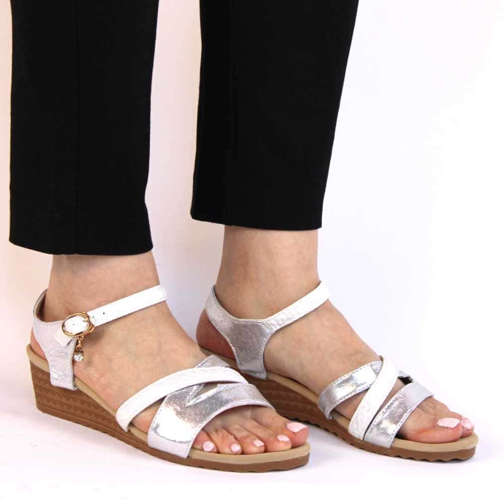 Aceste sandale de dama combina confortul si eleganta intr-un mod perfect! Cu o platforma de 1,5 cm si un toc de 5 cm, aceste sandale sunt ideale pentru a fi purtate in zilele calduroase de vara. Culoarea argintie adauga un plus de stil oricarei tinute.