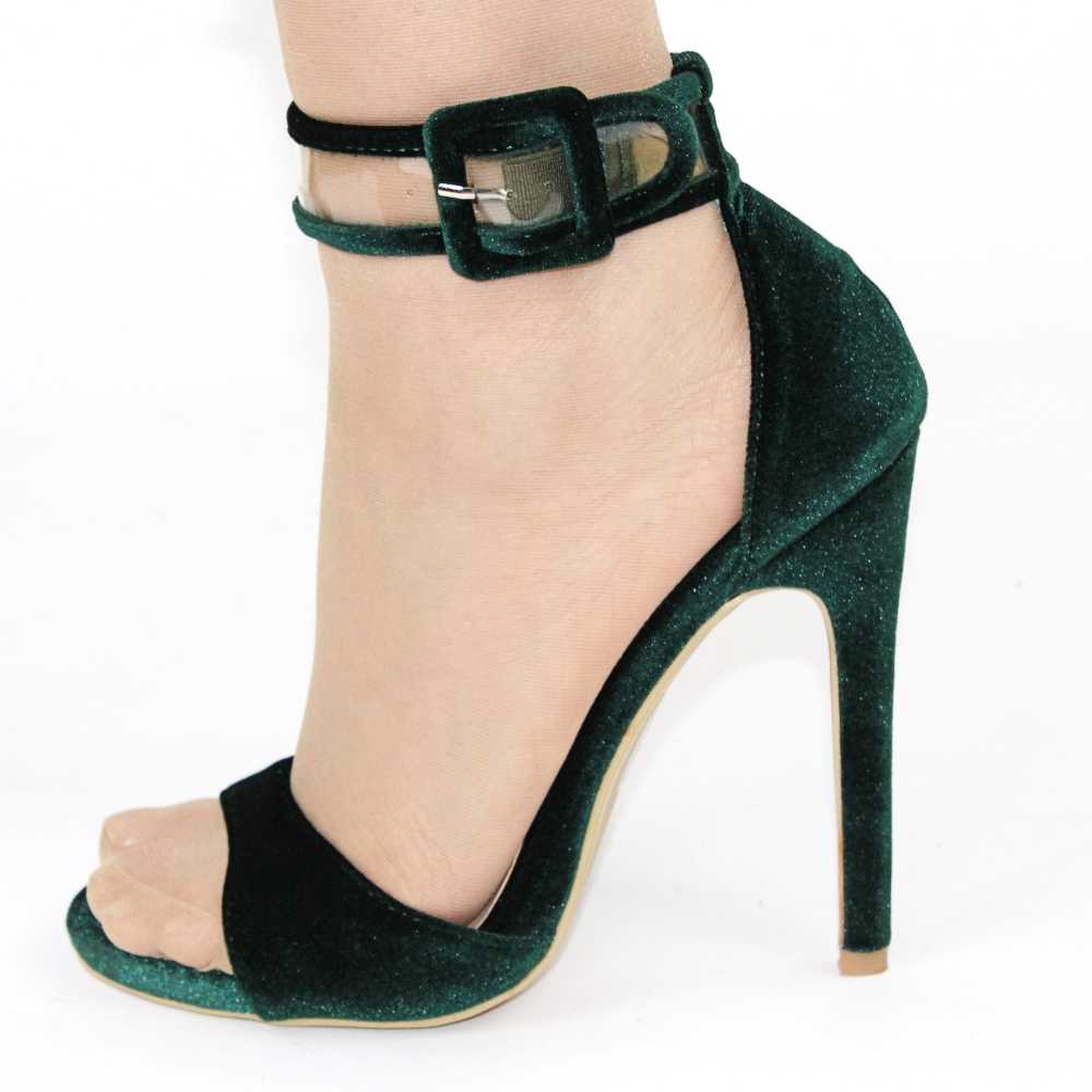 Sandale de dama elegante din catifea cu bareta transparenta H12-GREEN