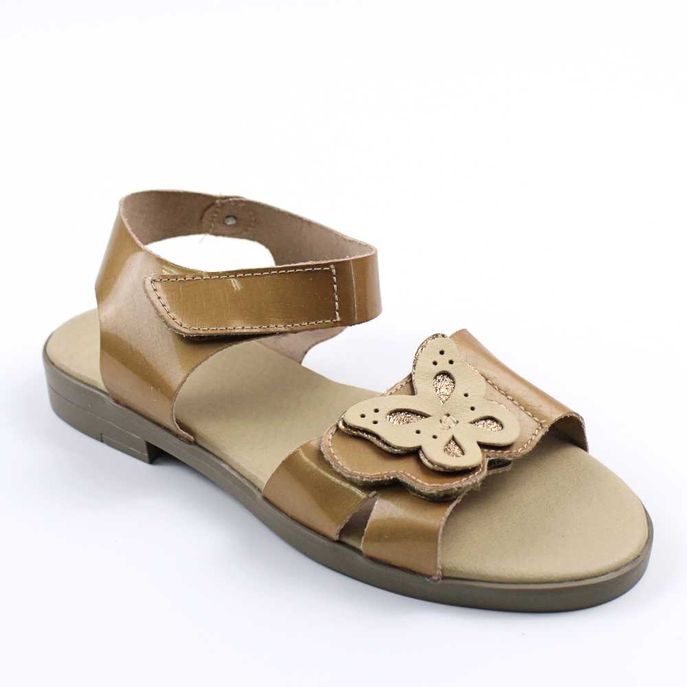 Sandale usoare de dama , din piele naturala , lacuita , cu talpa joasa 3263-BEJ/BEJ/1