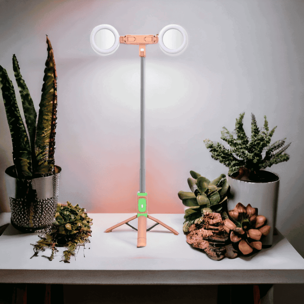 Un selfie stick cu inele luminoase si oglinda incorporata iti permite sa obtii iluminare optima pentru selfie-uri si fotografii mai bune, indiferent de conditiile de lumina.