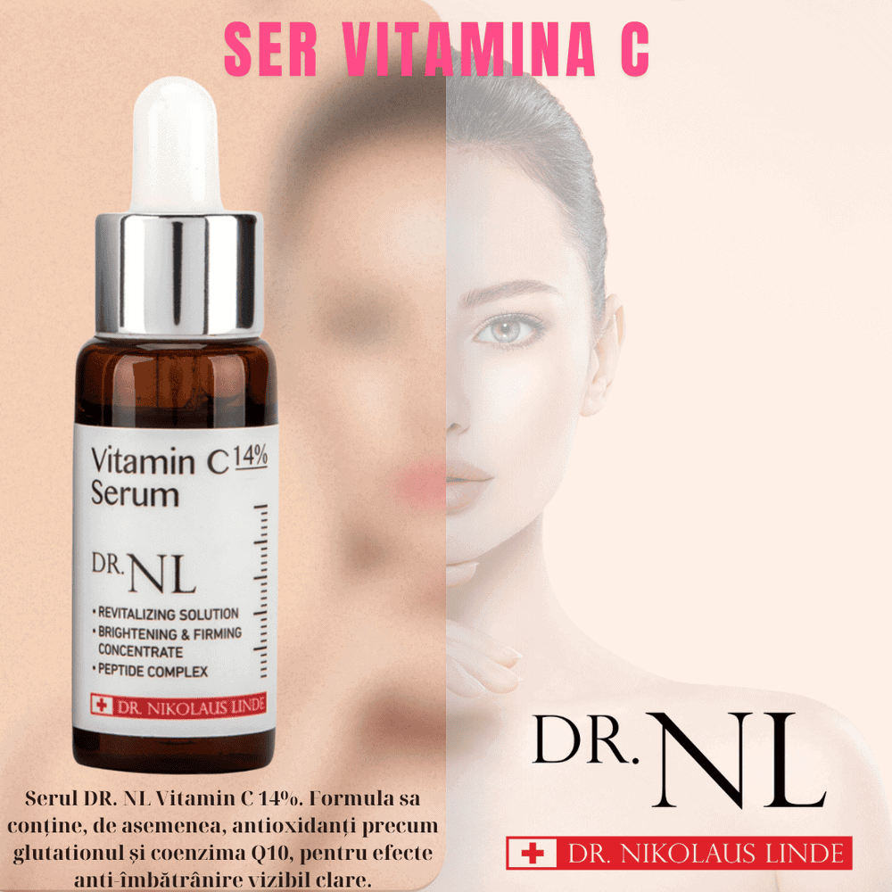 Ser premium cu Vitamina C Doctor NL Doctor NL Vitamin C 14% Serum este un ser de ultimă generație, formulat cu vitamina C pură stabilizată (14%) și un complex puternic de antioxidanți. Formula inovatoare susține luminozitatea și fermitatea pielii, reduce petele pigmentare și semnele vizibile de îmbătrânire, oferind protecție avansată împotriva stresului oxidativ.________________________________________Tip de piele recomandatPotrivit pentru toate tipurile de piele, inclusiv pentru pielea sensibilă.Ideal pentru persoanele care se confruntă cu ten tern, lipsit de elasticitate, pete pigmentare, riduri fine sau pierderea vitalității._____________ Ce face produsulOferă un efect rapid de brightening, reducând aspectul tern și vizibilitatea petelor pigmentare.Protejează pielea împotriva stresului oxidativ printr-un complex antioxidant.Susține procesele de colageneză pentru o piele mai fermă și elastică.Îmbunătățește textura pielii: netezește, regenerează și conferă un aspect mai radiant.___________________________Probleme vizate• Nuanță neuniformă și pete pigmentare• Pierderea luminozității și aspect tern• Riduri fine și linii de expresie• Elasticitate și fermitate redusă• Îmbătrânirea prematură cauzată de radicalii liberi________________________________________Ingrediente active principale• Vitamina C pură stabilizată 14% – ingredient antioxidant de referință, cu rată de absorbție crescută și eficiență dovedită în uniformizarea tenului.• Vitamina E + Acid Ferulic – sinergie antioxidantă ce amplifică efectele vitaminei C, protejând pielea de stresul oxidativ și menținând sănătatea barierei cutanate.• Glutation & Coenzima Q10 – antioxidanți puternici ce sprijină regenerarea celulară și reduc semnele vizibile de îmbătrânire.• EGF (Epidermal Growth Factor) – stimulează regenerarea celulară și îmbunătățește fermitatea pielii.• Doctor Linde Elixir Complex – combinație de extracte vegetale cu efect revitalizant.• Doctor Linde Soothing Complex – complex calmant pe bază de ingrediente botanice, ce reduce disconfortul și întărește bariera cutanată.________________________________________Beneficii demonstrate1. Absorbție eficientă a vitaminei CFormula specială permite pătrunderea rapidă și eficientă a vitaminei C în piele, maximizând efectul său antioxidant și iluminator.2. Efect sinergic de luminozitateAsocierea dintre Vitamina C, Vitamina E și Acid Ferulic amplifică acțiunea de uniformizare a nuanței tenului, oferind pielii un aspect mai luminos și sănătos.3. Vitamina C stabilizată 14%Produsele obișnuite cu vitamina C oxidează ușor la contactul cu aerul, pierzând din eficiență. Doctor NL folosește o formă stabilizată ce își păstrează proprietățile active și oferă rezultate vizibile.4. Cocktail antioxidant avansatCombinația de antioxidanți (Glutation, Q10 și complexe botanice) asigură o protecție puternică împotriva radicalilor liberi, prevenind îmbătrânirea prematură.5. Complex revitalizant Doctor LindeExtractele vegetale din Elixir Complex hrănesc pielea și îi redau vitalitatea, în timp ce Soothing Complex calmează și protejează împotriva factorilor iritanți.6. Testat dermatologicSerul a trecut testele de iritare cutanată, fiind potrivit și pentru pielea sensibilă.________________________________________Rezultate vizibile• Piele mai luminoasă și mai uniformă• Fermitate și elasticitate crescute• Riduri fine și linii de expresie estompate• Hidratare și vitalitate pe termen lung• Protecție antioxidantă intensă________________________________________Mod de utilizareAplicați câteva picături pe pielea curată a feței și gâtului, dimineața și/sau seara. Se recomandă utilizarea înaintea cremei hidratante sau a Cremei cu Ceramide Doctor NL pentru efecte optime.________________________________________Specificații comerciale• Concentrație: 14% Vitamina C pură stabilizată• Testat hipoalergenic• Fără alcool, fără conservanți Doctor Nikolaus Linde este un lider mondial în medicina estetică din Elveția.Doctor NL reunește cea mai modernă tehnologie cosmetică coreeană cu filosofia unică a frumuseții a Doctor med. Nikolaus Linde, pentru a asigura o eficacitate excepțională și sănătatea pielii.Doctor Linde este un expert internațional în frumusețe specializat în tratamentul ridurilor și al transformărilor pielii, folosind cele mai noi și inovatoare tehnologii. Doctor Linde instruiește medici în academiile sale internaționale și îi place să transmită cunoștințele și experiența sa în domeniul esteticii.De data aceasta, a lansat un brand profesional de cosmetice derma numit Doctor NL, integrând tehnologia coreeană de fabricație cosmetică. Brandul Doctor NL a efectuat cercetări aprofundate, a găsit modalități de a îmbunătăți în mod fundamental starea pielii și a creat o linie de produse condusă de știință, care oferă o eficacitate remarcabilă prin furnizarea ingredientelor nutritive de cea mai înaltă calitate pentru pielea ta.