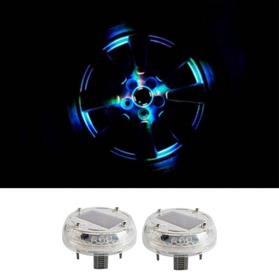 Set 2 capace jante auto LED multicolor, incarcare solara