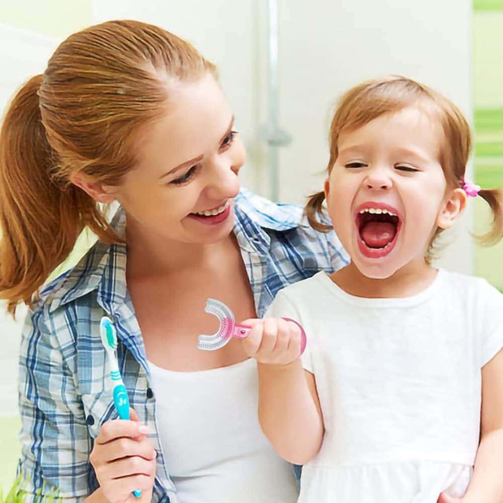 Capatul in forma de U permite copiilor un periaj mai confortabil.