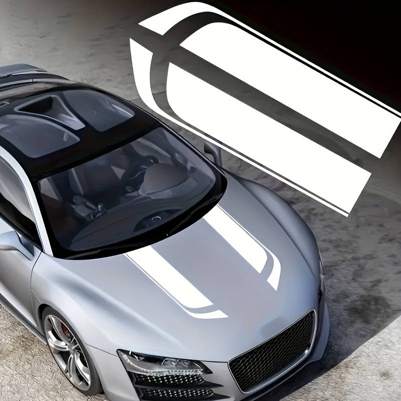 Set 2 stickere autoadezive Tuning, model "Hood Stripes V1", dimensiune 85 x 12 cm, culoare Alba