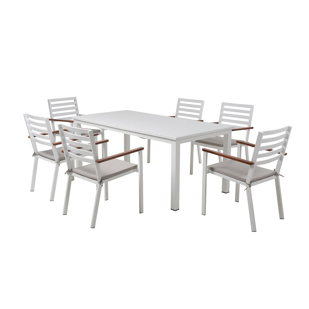 Set masa dreptunghiulara DacEnergy©, masa extensibila, scaune fixe, realizat din aluminiu, 245/183 x 90 x 75 cm, cu 6 scaune cu perne