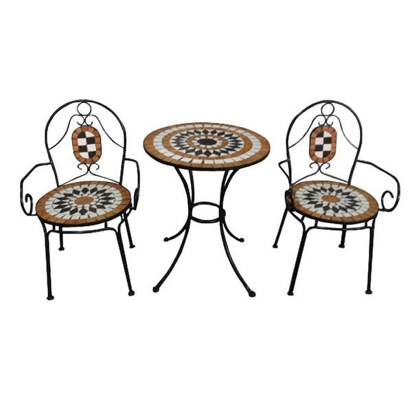 Set mobilier gradina DacEnergy©, cu masa rotunda si 2 scaune, confectionate din otel cu mozaic