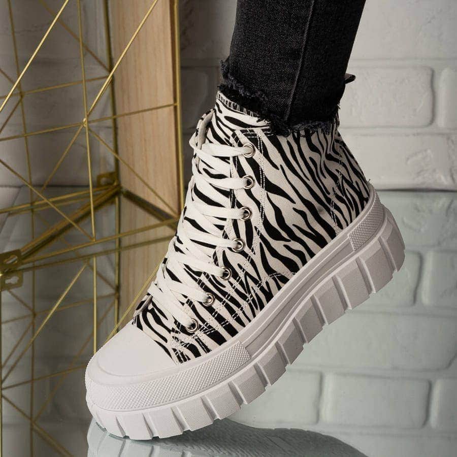 Sneakers Dama din Material Textil Rihanna - Stil și Confort cu Accente de Zebra!
