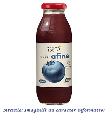 Sucul natural de afine potolește setea și alina pofta de dulce, cât ai zice Bun de Tot. Din fructe de afine proaspăt presate, îndulcit cu suc de struguri și fară zahar, conservanți sau aditivi alimentari, sucul asigura porția zilnica de vitamine, că tu să te bucuri de țoață savoarea naturii și de gustul unic al afinelor.