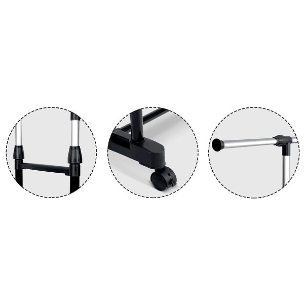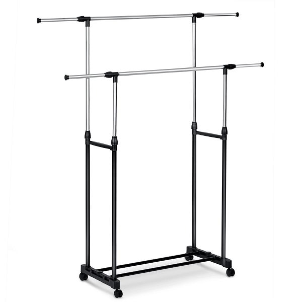 Suportul prezentat are doua manere , de exemplu pentru cravate, etc. Practic pentru studenti, in timpul renovarii, va functiona intr-un dulap de acasa, precum si pentru paltoane pentru oaspeti. Perfect pentru o familie cu copii, datorita inaltimii ergonomice reglabile.