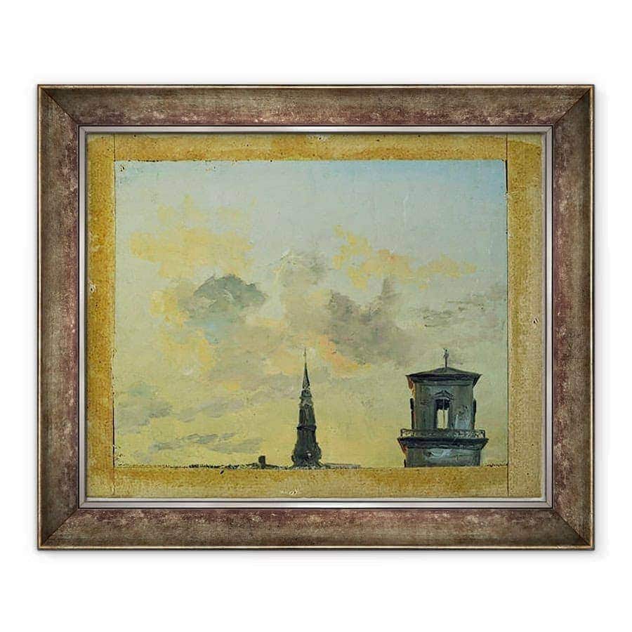 Tablou inramat - Johan Christian Dahl - Doua turnuri in Copenhaga impotriva cerului de seara