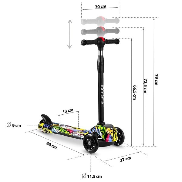 Trotineta, material ghidon aluminiu, cu 3 roti, iluminare Led in roti, inaltime reglabila, 79x27x60 cm, multicolor
