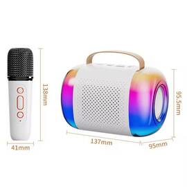 - Mini aparat de karaoke portabil cu un microfon wireless si difuzor LED : Culoare - roz