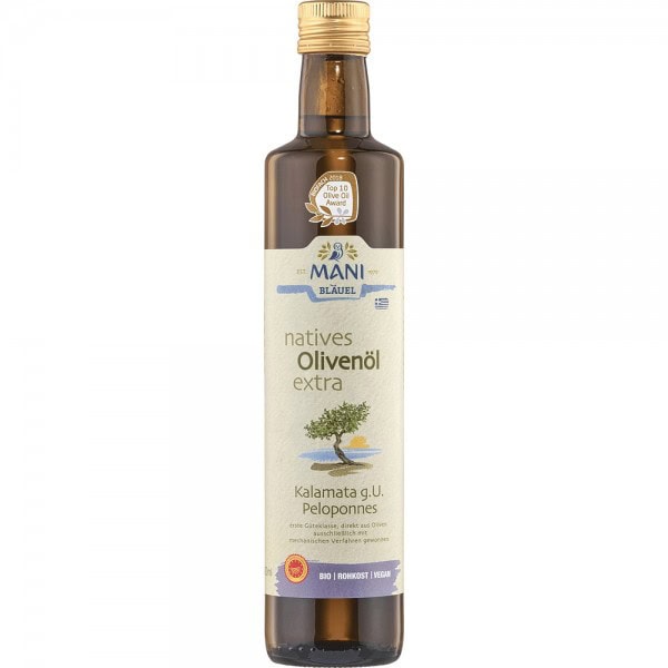 Uleiul Mani special din regiunea Kalamata are denumire de origine protejata. Uleiul de masline extravirgin bio pur, proaspat, usor fructat, se caracterizeaza printr-o aroma placuta de ierburi si flori salbatice si o aroma usor picant. Ceea ce face acest ulei de masline MANI atât de pretios este maslina Koroneiki, care este originara din Mani recoltata atent si si procesata prin procedee mecanice la rece. Soiul de masline autohton, clima modelata de marea din apropiere si solul mineral îi confera uleiului de masline MANI gustul sau unic.