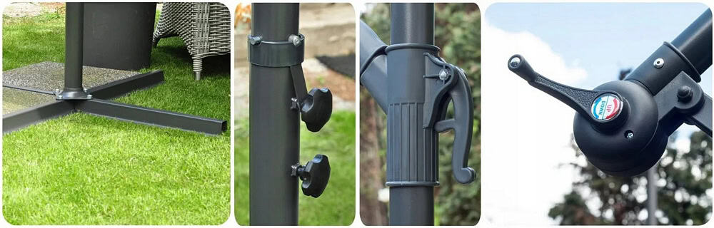 Posibilitate orice aranjare a umbrelei: inaltime + unghi de inclinare
