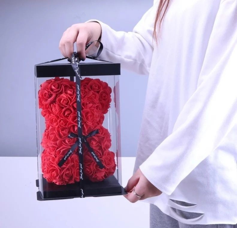Întregul urs trandafir este realizat manual cu sute de trandafiri artificiali. Aspectul general al ursului în formă de floare îl face drăguț și romantic.
