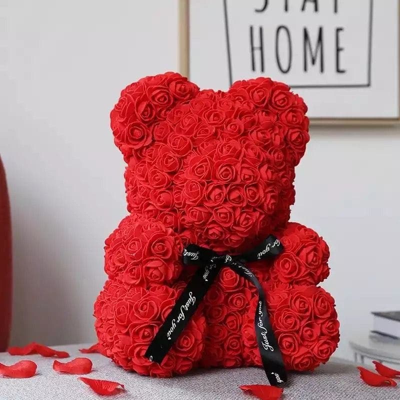 Ursulet din flori artificiale trandafir 28 cm : Culoare - rosu