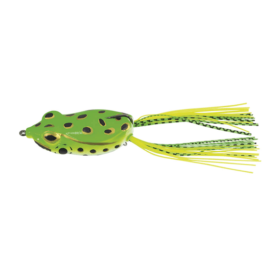 Hollow Frog = o naluca speciala. Este perfecta pentru acele locuri in care este imposibil sa pescuiesti cu o naluca armata cu offset. : se stie ca in locurile cu iarba, copaci scufundati sau stuf se ascund multi pesti rapitori. Naluca recuperata cu miscari mici imita perfect evolutia unei broaste pe suprafata apei, ceea ce poate provoca atacurile stiucilor, bibanilor sau a bassului. Cu toate acestea, daca broasca trebuie pescuita in apa deschisa si curata, are prevazuta un ochi fix pentru a putea adauga un sistem stinger (struna + ancora) ceea ce ii scade procentul de ratare a atacurilor.