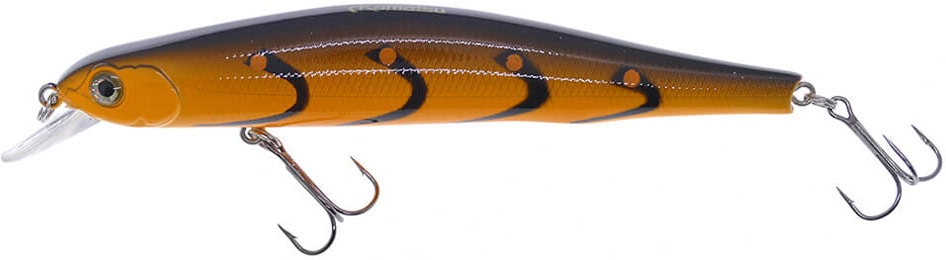 Kamatsu Jumping Minnow 11cm este un vobler ce are corpul alungit ce seamana foarte mult cu un oblete. Scopul final in proiectarea acestui model a fost acela de ai oferi o actiune realista si o distanta cat mai lunga de lansare. Acest vobler minnow dispune de un sistem de rulare megnetic (Magnetic Running Shaft system) ce va permite sa fie lansat la distante foarte mari, deci veti pute acoperi cu el o suprafata mai mare de apa.In timpul recuperarii voblerul are o miscare de balansare foarte pronuntata si atunci cand este smucit se misca destul de agresiv stanga-dreapta, iar in momentul cand opriti recuperarea, Jumping Minnow se va dezlantui la adevartul sau potential, ramanand suspendat, ceea ce va facilita atacul rapitorilor din zona. Evolueaza intre 0.3 si 1.5m ceea ce il face un vobler excelent pentru pescuitul avatului, stiucii, salaului si de ce nu a pastravului.